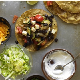 To assemble the tostadas, top each tortilla with one-fourth of the zucchini mixture, 2 tablespoons cheese, 1/4 cup lettuce, one-fourth of the avocado, 1 tablespoon yogurt, and 2 tablespoons cilantro. Serve with the lime wedges