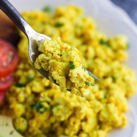 Pour the non-dairy milk into the pan, and stir to mix. Serve immediately with sliced avocado, hot sauce, parsley, steamed kale, toast or any other breakfast item.