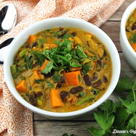 Transfer the onion mixture to the slow cooker. Stir in the sweet potatoes, bell pepper, beans, and tomatoes and their juices.