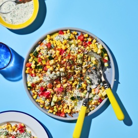 This recipe can be made with many types of grains. Give brown rice, barley or wheat berries a try. Although we’ve added the corn and zucchini in their uncooked state, you can microwave them until tender or sauté them in a nonstick pan until lightly browned.